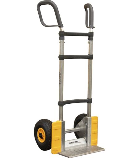 Kvalitets sækkevogn med ergonomiske håndtagAlu-Pro 2000 CLS S er lite udgaven af den populære Alu-pro 2500. Den har en standard bæreplade og er udstyret med de populære ergonomiske håndtag, hvor vinklerne bevirker at arme og hænders stilling bliver optimal og belastningen af hænder, albuer og skulder leddene minimeres.De justerbare håndtag, kan indstilles til den optimale arbejdshøjde og -stilling.Produceret i DanmarkTeleskophåndtagPlastdele af højkvalitetsplast (HDPE)Kapacitet: 200 kgDimensioner (BxH): 500 x 1180/1530 mmVægt: 14 kgHjul: Luftgummi 3.00 x 4/4. Nav: 20 x 75 mm. Plastfælg med rullelejeBæreplade: 220 mm ...