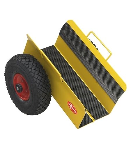 Ravendo Pladehund m. klem Pladevogn med en sporbredde på 160 mm og designet med klem. Når pladehunden belastes trykkes siderne ind på emnet og holder det fast, hvilket giver en god stabilitet. Specifikationer: Mål (LxBxH): 400x380x260 mm Lastkapacitet: 200 kg Lastebredde: 60-160 mm Hjul: Luftgummi 3.00 x 4/2 stålfælg med rullelejer Egenvægt: 8 kg ...