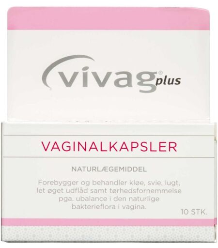 Vivag Plus Vaginalkapsler er et naturlægemiddel til forebyggelse og behandling af kløe, svie, tørhedsfornemmelse, lugt og/eller let øget udflåd på grund af ubalance i den normale bakterieflora i vagina. Tilstanden kan vise sig som let øget udflåd og kløe. Vivag plus vaginalkapsler ...