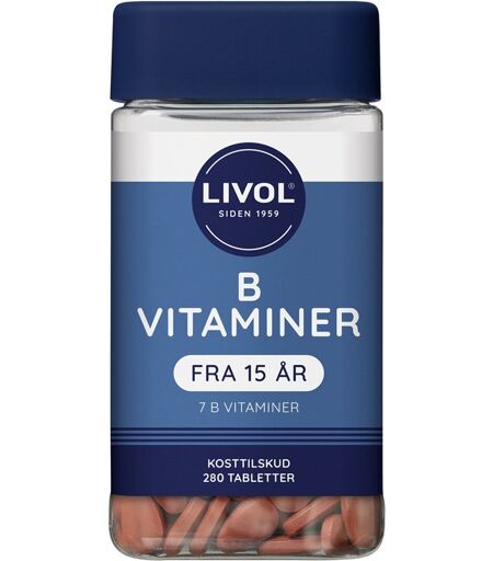 Livol B Vitaminer er et kosttilskud med syv forskellige B-vitaminer. Vitamin B6 og B12 hjælper til at mindske træthed og udmattelse. Riboflavin hjælper til at vedligeholde normal hud og slimhinder. Thiamin hjælper til en normal hjertefunktion. Produktet er udviklet i Danmark og er gelatinefri, samt vegansk. Dispenseringsform Tabletter. ...