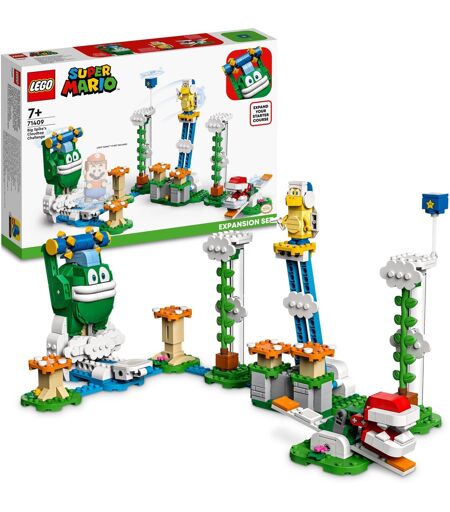 Børn kan skabe deres helt egen LEGO Super Mario himmelbane med udvidelsessættet Big Spikes sky-udfordring (71409). Det indeholder velkendte udfordringer fra Super Mario-videospillet og LEGO figurer af 3 populære fjender – en Big Spike, en Boomerang Bro og en kødædende plante. Spillere optjener digitale mønter ved at hjælpe deres LEGO Mario, LEGO Luigi eller LEGO Peach figurer (medfølger) med at kæmpe mod Big Spike, hoppe på de orange svampetrampoliner for at komme op til Boomerang Bro, bruge superstjerneblokken og meget mere. (Bemærk: Startbanesæt 71360, 71387 eller 71403 er påkrævet for at spille).Tilhørende appDownload LEGO Super Mario appen – den indeholder byggevejledninger, inspirerende tips og andre sjove ting, der kan styrke børns kreative oplevelse.Fremragende gaveDette legesæt vil være en fantastisk gave til trendsættende børn fra 7 år og er ideelt til leg på egen hånd eller sammen med andre. Med LEGO Super Mario startbaner og udvidelsessæt kan fans udvide, ombygge og skabe deres egne unikke baner til timevis af spil og leg med møntindsamling. ...