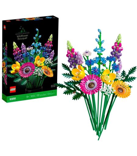 Byg blomster, der aldrig falmer: Dette sæt fra LEGO Icons-serien skaber en storslået buket vilde blomster – et stilfuldt designet kunstværk, der udelukkende er lavet af legoklodser. Dette farverige sæt indeholder i alt otte forskellige arter af vilde blomster med justerbare stængler med sorterne kornblomst, lavendel, valmue, ko-sley, læderbregne, gerberaer, larkspur og lupin. Lærkespur når en højde på ca. 47 centimeter. Buketten kan arrangeres og udstilles, som du ønsker, eller kombineres med andre sæt fra LEGO''s Botaniske Samling. En fængslende byggeoplevelse for naturelskere eller spirende blomsterhandlere. ...