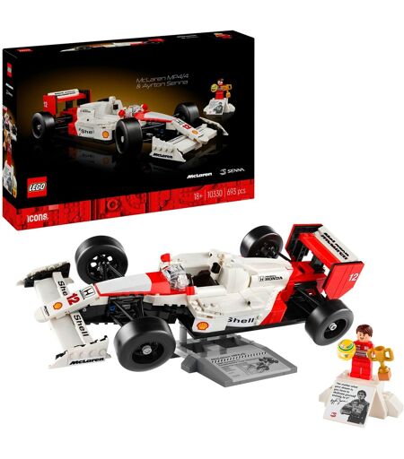 Et fantastisk sæt til fans af racerbiler: LEGO Icons McLaren MP4/4 & Ayrton Senna er en virkelighedstro model af den legendariske racerbil fra 1988. Originalen er en af de mest succesrige Formel 1-biler nogensinde - et mesterværk af racerhistorien. Modellen blev udviklet i samarbejde med McLaren og mærket SENNA. Den har fungerende styring, trykaffjedring, en justerbar bagvinge, slicks, sidespejle, gear og en detaljeret kopi af V6-turbmotoren. Den indeholder en stand med en informationstavle og en minifigur af Ayrton Senna med en stand, der er modelleret efter en vinders podium. En informationstavle med et legendarisk citat samt et foto af Ayrton Senna fuldender denne udstilling, som skærer en fin figur i ethvert rum. Modellen består af 693 dele. ...