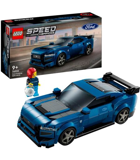 Dette LEGO sæt fra Speed Champions serien er en trofast genskabelse af den fantastiske original. Den blå Ford Mustang Dark Horse har autentiske detaljer såsom bagvingen, forlygterne, en karakteristisk kølergrill, Ford-logoer og signaturudstødningsrørene. Indvendigt kan du beundre gearene og instrumentbrættet. Taget kan tages af, så racerminifiguren med hjelm kan komme komfortabelt ind. ...