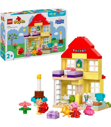 Det er Gurli Gys fødselsdag - og det skal fejres! Dette sæt fra LEGO DUPLO serien giver børn fra to år en fantastisk kulisse til fantasifulde fødselsdagslege. Karaktererne Gurli Gris, Pedro Pony og Luzie Locke vil være der. Med et kamera, en fødselsdagskage, en bradepande, en gave og en legetøjsbamse er alt dækket til en fantastisk fest. Sættet med i alt 59 alderstilpassede designede, farverige DUPLO klodser indeholder et hus, der kan bygges, hvor du kan finde et soveværelse, et køkken, et badeværelse og et toilet med håndvask. Dette sæt træner ikke kun fingerfærdigheden, når du bygger, men giver også en række forslag til kreativ leg. ...