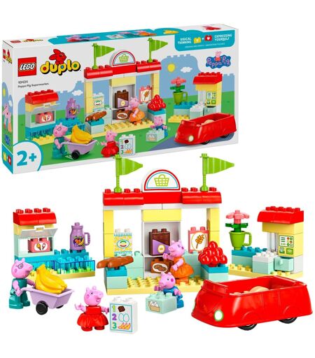 Gå på indkøb med "DUPLO Gurli Grilines supermarked" fra LEGO! Dette sæt er ideelt til børn fra 2 år og opefter og bringer Gurli Gris'' verden direkte ind på børneværelset. Førskolebørn ledsager Gurli og hendes familie på en spændende shoppingtur i bilen, der er kendt fra tv-serien. Du vil opleve sjov rolleleg med 4 kærlige minifigurer - Gurli Gave, Schorsch, Mama og Papa Wutz. Dette kærligt designede sæt indeholder meget af det, du finder i et rigtigt supermarked: en selvbetjeningskasse med scanner, en indkøbskurv og en rigt fyldt fryser. Børn forbedrer legende deres fingerfærdighed, mens de leger shopping. Dette sæt byder ikke kun på en masse bygge- og legesjov for børn fra to år, men fremmer også udviklingen af vigtige motoriske færdigheder. Et vidunderligt DUPLO eventyr lavet af 70 DUPLO klodser venter fans af den elskelige grisefamilie! ...
