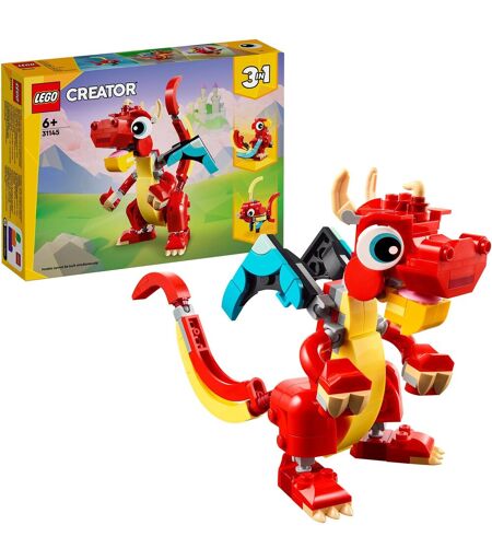 Ud af 149 LEGO elementer skaber dette sæt fra LEGO Creator serien en sød rød drage: Den har store øjne og kan bevæge sine arme, hænder, vinger, ben, hoved og mund. Dette gør det muligt for ham at blive sat i den rigtige positur til ethvert eventyr. Men det er ikke alt: dette sæt kan også bruges til at bygge en rød LEGO føniks eller en sjov fisk. Så børn fra 6 år kan bygge efter deres præference! ...