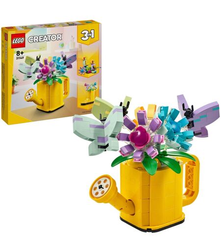Dekorativt, kreativt og varieret: Det er kendetegnene ved dette sæt fra LEGO Creator serien. Vandkanden med blomster er lavet af 420 elementer og indeholder bevægelige kronblade og tre legetøjssommerfugle, der ser ud til at svæve på klare LEGO pinde. Men det er ikke alt: Vandkandemodellen kan også omdannes til en gul gummistøvle med 3 LEGO blomster eller til to søde gule legetøjsfugle på en blomsterdækket stang. ...
