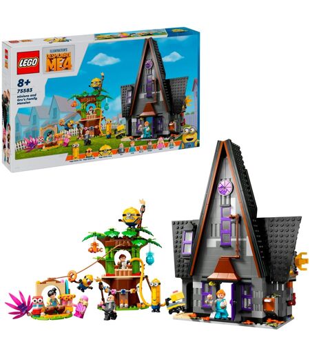 For fans af Minions er her palæet, der er kendt fra filmene som et fantastisk LEGO sæt! Legesættet med Grus hus, der er omkring 27 centimeter højt, rummer mange genstande og steder, der kendes fra filmene: Den røde sofa, det raketformede rum eller Minions'' laboratorium. Nogle elementer roterer eller indeholder andre genstande såsom et toilet eller en kagedåse. Ved siden af villaen er der også pigernes farverige træhus med spiseplads og et skjulested med blomster, legetøj og stearinlys. En zipline fører til festområdet på jorden, som har bongotrommer. Sættet indeholder også mange små detaljer at opdage - spændende for filmfans! Der er 6 minifigurer: Gru, Lucy, Margo, Edith, Agnes og babyen. Tre Minions, der kan bygges (Mel, Jerry og Tim), giver dig flere måder at lege på. ...