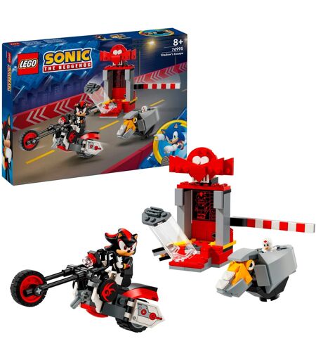 Pindsvinet Skygge er på farten i halsbrækkende fart med dette LEGO sæt: På sin motorcykel bryder han ud af stasiskammeret i laboratoriet og drøner mod den smækkende barrikade. Dermed skal han besejre Badnik RhinoBot, som befrier Clucky og giver ham mulighed for at fortsætte sin flugt. Sættet tilbyder mange spilmuligheder for fans af videospillet. Der medfølger figurerne Shadow, Clucky og en RhinoBot, der kan bygges. ...