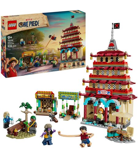 Et LEGO sæt til anime-fans og serien "One Piece": 926 elementer bruges til at skabe en ikonisk scene fra Netflix-serien - opgøret mellem stråhattepiraterne og arkadepiraterne! Byggesættet indeholder minifigurer af Luffy – med armforlængerstykker – Nami, Lysop, Arlong og Chu. Under opgøret kan børn kollapse pagoden ved at banke hårdt på toppen af taget. I skydegalleriet kan du målrette sjove mål med skytterne. Den onde Arlong kan placeres på en trone i hajangrebsbygningen. Chu kan få noget at drikke i boden. Og i skoven står den legendariske ketchupflaske. Sættet indeholder knopskydere og tilbehør, bl.a. 3 efterlysningsplakater. ...