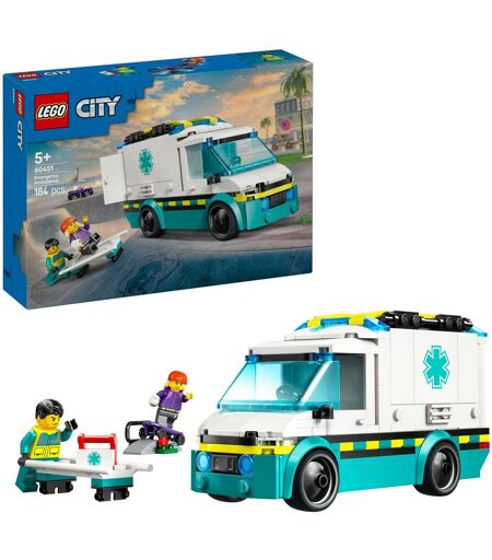 En skateboarder er faldet – en nødsituation for LEGO City ambulancen! Akutlægen er hurtigt på stedet med sit nødudstyr. Takket være de åbne bagpaneler og sidepanelerne, der kan vippes op, er dette LEGO legetøjsfartøj med 184 elementer en fantastisk måde at lege på. Båren hjælper med at transportere patienten. Hurtigt til næste nødsituation - hvad skete der denne gang? ...