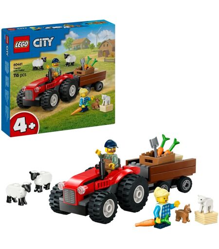LEGO City landmanden kan godt lide at være på farten med sin traktor. Traktoren kører også gennem ujævnt terræn, og landmanden kan transportere alt, hvad han har brug for i hverdagen på traileren. Denne gang er landmandens kone der: Hun transporterer gulerødder til fårene i en kasse. Den lille hund er også på vej! ...
