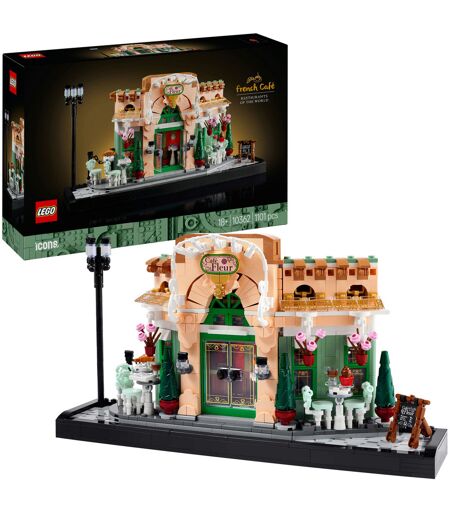 For Frankrigelskere og fans af historisk arkitektur: Den franske café fra LEGO serien Icons emmer af en masse fransk charme. Et LEGO klodsfortov med en klassisk gadelampe er den perfekte ramme for Café Fleur med sin maleriske facade og udsmykkede stole. De hængslede dobbeltlåger giver udsigt til det fine tapet og de mørke træmøbler. Masser af indviklede detaljer og tilbehør såsom croissanter, kopper, en avis og et kasseapparat er en del af denne tro kopi af en klassisk fransk bistro. Med sin slanke profil og flade bagpanel passer denne model perfekt på hylden. ...