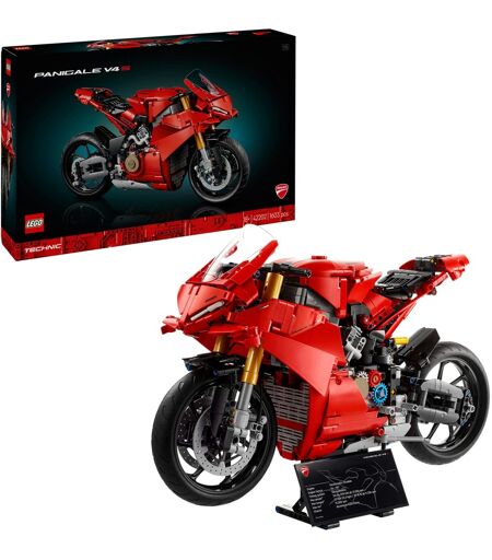 Et LEGO Technic sæt som en hyldest til Ducati Panigale V4 S – en ekstremt kraftfuld og hurtig racermotorcykel fra Ducati! Denne model er fremstillet af 1603 LEGO elementer og har affjedring foran og bagpå. Andre fantastiske detaljer for teknologi- og motorcykelentusiaster: en manuel gearkasse (3 gear og frigear) med gearpedal, en bevægelig V4-motor og en bemaling i den legendariske Ducati-rød! Med det medfølgende stativ bliver denne model et spektakulært blikfang. ...