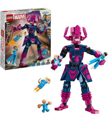 LEGO Marvel Super Heroes Fantastic Four vs. Galactus byggefigur bringer de ikoniske superhelte fra The Fantastic Four: First Steps direkte ind på dit barns værelse. Sættet indeholder en imponerende Galactus-byggefigur, fire minifigurer og masser af bevægelige elementer og inviterer dig til spændende superhelteeventyr. Minifigurerne af Fantastic Four har fantastiske detaljer: Mr. Fantastic har udtrækkelige ben, Human Torch er udstyret med blastere, flammer på fødderne og et flyvende stativ, Invisible Woman har sine kraftskjolde klar, og The Thing imponerer med sine overdimensionerede hænder. Galactus'' store, fuldt artikulerede bygningsfigur giver mulighed for episke kampe og kan deltage i dynamiske dueller med heltene. ...