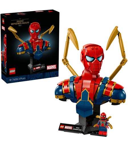 Den spektakulære Iron Spider-Man-buste lavet af 379 LEGO elementer er et fascinerende byggesæt til superheltefans. Busten af den legendariske superhelt har to bevægelige mekaniske arme og et roterende hoved. De to udskiftelige baser er prydet med en navneplade. På en af disse piedestaler er der også plads til den aftagelige Spider Man-minifigur. ...