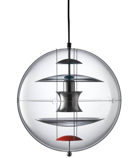 Verpan Verner Panton Globen Ø: 40 cm - Coloured Glass Globen er en ægte designklassiker. Designet af Verner Panton tilbage i 1969, og alligevel er den stadig populær dagen i dag. Den transparente runde akryl skal som nænsomt beskytter de 5 reflektere, vil passe ind i mange hjem. Her får du et design som virkelig har holdt siden sin oprindelse. . For Verner Panton var målet med Globen at designe en lampe som kunne fange opmærksomheden samtidigt med, at den forener rummet. Pendlen kan hænge alene eller klynger, den kan hænges over spisebordet, i hyggehjørnet eller i korridoren, uanset hvor den hænger, vil den tilføje varme til rummet. Lamperne er altid individuelt nummererede og certificerede. Pas på din nye Globe Det er en god idé at følge nedenstående vejledning om montering og generel håndtering af Globen. Når du tager Globen ud af kassen, anbefaler vi at der gøres brug af de handsker, der medfølger i kassen. Kuplerne er meget skrøbelige i forhold til ridser, hvorfor du ikke bør påbegynde monteringen af pendlen, inden du har taget handskerne på. Under montering anbefaler vi desuden, at Globen ikke stilles på en sofa, seng eller lignende, da dette også kan skaber ridser på kuplerne - benyt derfor den originalt skum-emballage, såfremt du får brug for at stille Globen hen. At montere en Globe kræver tålmodighed, tid og gerne at man er to personer om monteringen. Under montagen er det vigtigt at være meget forsigtigt, så tallerknerne inde i lampen ikke kommer til at gå imod kuplerne - her er det vigtigt at du beholder skum-emballagen på indtil den er monteret. Vær opmærksom på, at Globen aldrig bør håndteres uden brug af handsker. Til rengøring anbefaler vi at bruge Verpan rengøringssæt til Globen. Designer: Verner Panton 1969 Mål: Diameter, Ø: 40 cm Ledningslængde: 400 cm Vægt: 5 kg Materialer: Akrylskærme Stål kæder Baldakin i malet metal Reflektor af malet aluminium Stofledning Specifikationer: Ledning: 4 M Stofledning Hvid loftroset (metal lakeret). Vægt: 5 kg. Tekniske specifikationer: Kun til indendørs brug Fatning: E14 - pære er ikke inkluderet Spænding: 240V Max watt: 60W Inkl. baldakin ...