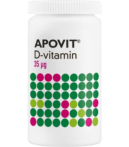 Apovit D3-vitamin er et kosttilskud, som støtter immunforsvaret og vedligeholder muskelfunktion, tænder og knogler. Apovit D3-vitamin 35 mikg er særligt velegnet til: alle voksne og børn over 11 år, der ønsker et tilskud af D-vitamin eller ved lægeanbefaling. Apovit D3-vitamin er uden gelatine, gluten og laktose. Dispenseringsform Tabletter ...