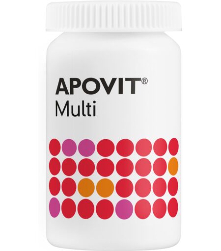 Apovit Multi indeholde bl.a. A, C, D-vitamin, zink og selen, som bidrager til immunsystemets normale funktion. Dispenseringsform Tabletter. ...
