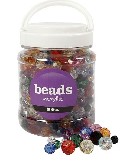 Perlemix med facetslebne akrylperlerDu får her en stor perlespand fra Beads med eksklusive perler af klar akryl i flot kvalitet med facetslibning. Perlerne har forskellige størrelser og farver og er perfekte til kreativ smykkefremstilling og hobbybrug. Du kan f.eks. bruge perlerne til at lave flotte armbånd, halskæder, hårspænder og hårbøjler eller til fremstilling af elegante nøgleringe og nøglesnore. Perlerne kan med fordel bruges til kreativ udfoldelse i børnehaven, skolen, SFO’en, klubben eller hjemme i dit eget lille perle- og smykkeværksted. Farve: AssorteretDiameter: 10, 12, 16 mmHulstørrelse: 1-2,5 mmAntal pr. spand: 440 stk. ...