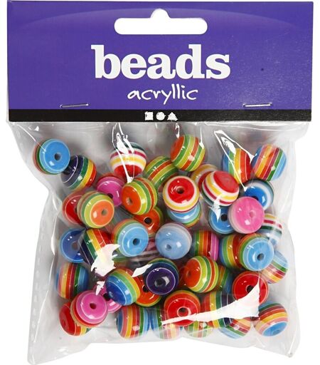 Multifarvede perler med striberMed disse akrylperler fra Beads får du runde perler af resin. Perlerne er 12 mm og har en hulstørrelse på 1,5 mm. Dertil har perlerne flotte multifarvede striber, hvilket gør dem gode til kreativ smykkefremstilling og hobbybrug. Du kan f.eks. bruge perlerne til at lave kreative armbånd, halskæder, hårspænder og hårbøjler eller dekorative nøgleringe og nøglesnore. Perlerne kan med fordel bruges til kreativ udfoldelse i børnehaven, skolen, SFO’en, klubben eller hjemme i dit eget lille perleværksted.Farve: MultifarvetDiameter: 12 mmHulstørrelse: 1,5 mm Antal pr. pose: Ca. 50 stk. ...