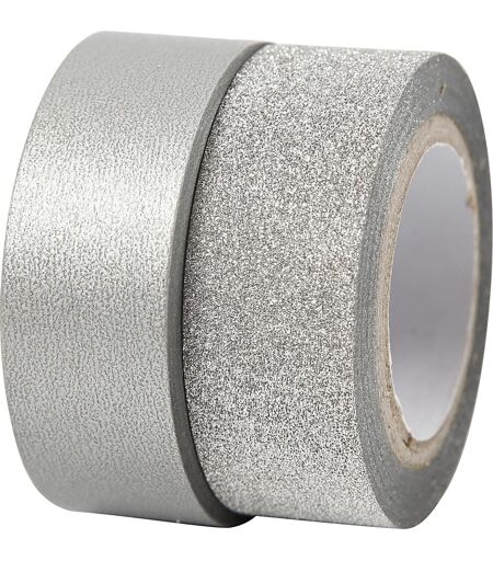 Designtape med flot finish og glitter Med designtape fra Vivi Gade får du et sæt med en rulle glittertape af selvklæbende glitterfilm og en rulle maskingtape med flot farve og finish.Brug f.eks. det fine designtape som kortpynt til kreativ kortfremstilling, så du nemt kan skabe de flotteste og mest kreative DIY kort, indbydelser og invitationer. Du kan også bruge designtapen til mange andre kreative formål og hobbyprojekter – kun fantasien sætter grænser.Farve: SølvMål glittertape (BxL): 15 mm x 7 mMål maskingtape (BxL): 15 mm x 10 mPakke med 2 ruller ...
