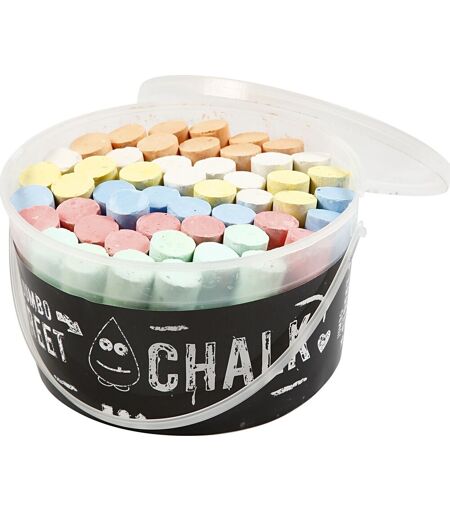 Store gadekridt i flotte farverDu får her en praktisk spand med 50 jumbo gadekridt i 6 forskellige farver. Du får samtidig en spand fuld af udfoldelsesmuligheder for børn og voksne i alle aldre. Med gadekridtende kan den kreative leg flyttes udenfor og masser af sjov og leg kan udfoldes på enhver fast overflade. Tegn f.eks. hinkeruder eller bare flot gadekunst eller spil ”Jeg melder krig” – kun fantasien sætter grænser.Dertil er kridtende lette at have med sig omkring og opbevares sikkert i den store og praktiske plastspand med hank, så du altid har legen og kreativiteten lige ved hånden.Farve: AssorteretAntal: 50 stk.Praktisk opbevaringsspand med hank ...