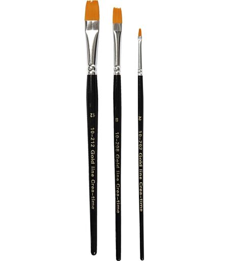 Gode allround pensler i høj kvalitetMed Gold Line pensler får du gode allround pensler i topkvalitet med børster af nylonhår og med flotte sortlakerede træskafter. Penslerne egner sig til både tykt- og tyndtflydende malingstyper, lim og lakker og penslerne er dertil meget formstabile.Her får du et sæt med 3 forskellige størrelser: 3 mm, 9 mm, 12 mm Antal: 3 stk.Form på børste: FladBørstestørrelse: 3 mm, 9 mm, 12 mmSkaft: Kort ...