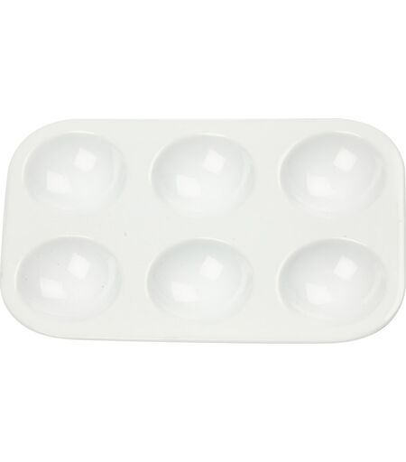 Holder dine farver adskilteHer får du en rektangulær palette i hvid plastik. Paletten har 6 rum, så du har plads til 6 farver ad gangen. De praktiske rum sikrer at du nemt kan holde dine farver rene og adskilte mens du maler og slipper kreativiteten løs.Mål (LxB): 13 x 8,5 cmMateriale: Hvid plastAntal rum: 6 ...