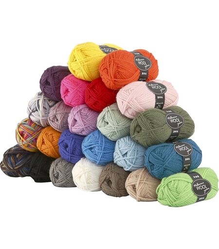 Uldgarn til strik, hækling og filtningDu får her 24 garnnøgler i forskellige farver af 100 % australsk kvalitetsuld, som er uimodståeligt blødt og lækkert. Uldgarn er og vil altid være en sand klassiker til både strikning, hækling og filtning, da det giver en dejlig tyk og fyldig fornemmelse, som i de kolde vintertider er ren luksus.Uldgarn har mange gode og praktiske egenskaber, som ved rigtig brug og ved den rigtige behandling sikrer dig kreationer som holder i mange år. Uldgarn kan med fordel bruges til sokker, trøjer, sjaler, ponchoer og andet tilbehør som f.eks. huer, vanter og halstørklæder. Du skal dog være opmærksom på at uld skal håndvaskes og kun tåler at blive vasket ved max 30°C. Ønsker du at filte dit færdige produkt eller at lave f.eks. et par filtede hjemmesko, så er Melbourne uldgarn også et særdeles godt valg, da garnet filter meget jævnt, så det færdige produkt bliver super flot.Sampak med 24 garnnøglerFarve: AssorteretMateriale: 100 % australsk kvalitetsuldVægt pr. garnnøgle: 50 g ...