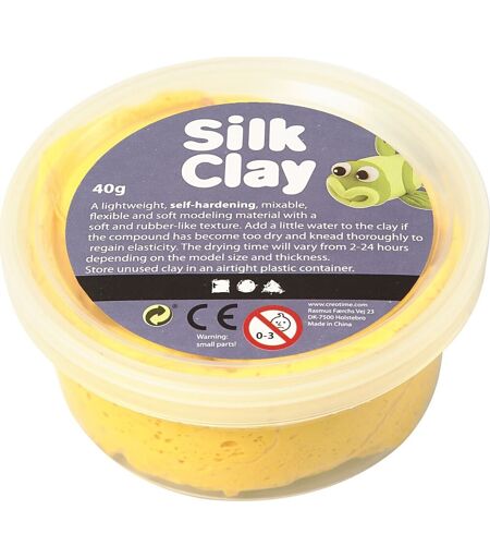 Selvhærdende modellervoks med blød og smidig konsistensMed modellervoks fra Silk Clay får du en silkeagtig letvægtsmasse til modellering og kreativ udfoldelse. Modellervoksen har en silkeblød og smidig konsistens som er nem at arbejde med, så du nemt kan forme voksen og skabe sjove, kreative og fantasifulde figurer.Silk Clay kan bruges af børn og voksne i alle aldersgrupper og er en selvhærdende modellervoks, som bevarer en skumagtig konsistens efter tørring. Silk Clay har en god hæfteevne, så du let kan fastgøre modelleringsmassen på forskellige emner, helt uden brug af lim og du kan nemt blande de forskellige farver til nye kreative farver.Modellervoksen leveres i praktiske lufttætte bøtter, som skal holdes lukket når voksen opbevares så uønsket tørring undgås. Skulle du alligevel opleve at voksen uheldigvis er blevet tør, kan modelleringsmassen æltes godt igennem med lidt vand, så den får sin smidighed igen. Farve: GulIndhold: 40 gSelvhærdendeSilkeagtig konsistens ...