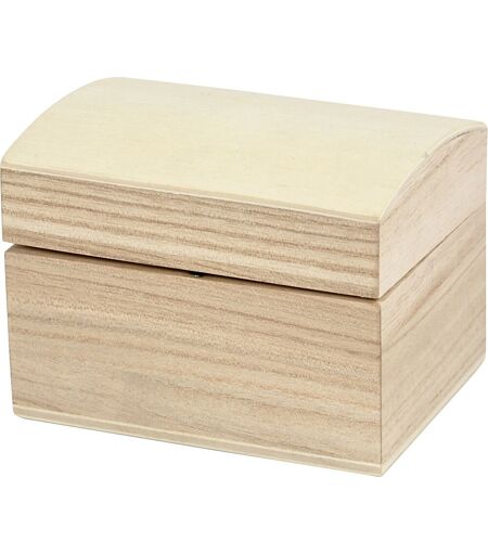 Skattekiste i lyst træSkattekiste i lyst kejsertræ med buet låg og en lille skjult magnetlås i kistens kant og låg, som fint lukker låget til. Trækisten kan bruges til opbevaring af mindre ting som f.eks. perler, smykker, sytråd og nåle eller små pynteting og dekorationsartikler. Du kan bruge kisten som den er, eller du kan dekorere og personliggøre den med f.eks. hobbymaling, decoupage eller glitter.Materiale: KejsertræMål (LxBxH): 8 x 6 x 4,5 cmMagnetlås ...