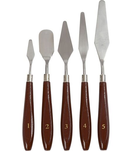 Malerknive i metalHer får du et smart og praktisk sæt med malerknive i 5 forskellige størrelser, former og bredder, som du kan bruge til forskellige kreative formål. Malerknivene har alle paletter i metal og et lakeret træskaft, så de er lette og gode at arbejde med.Antal: 5 stk.Størrelse: Assorteret ...