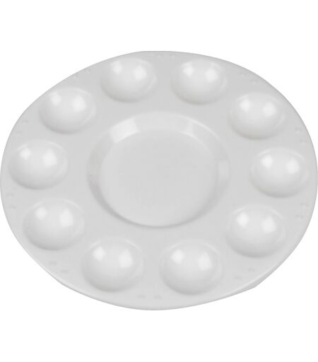 Holder dine farver adskilte Her får du en rund palette i hvid plastik. Paletten har 11 rum, så du har plads til 11 farver ad gangen. De praktiske rum sikrer at du nemt kan holde dine farver rene og adskilte mens du maler og slipper kreativiteten løs. Mål (Ø): 17 cm Materiale: Hvid plast Antal rum: 11 Leveres i pakke med 10 stk. ...