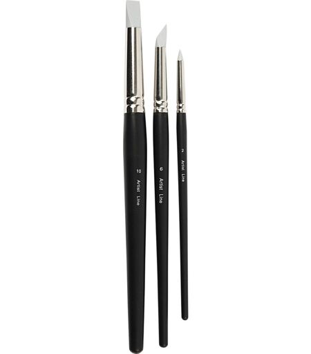 Gode gummipensler til ridseteknikDu får her et sæt spidse pensler med tegnespidser i silikone, som kan anvendes til ridseteknik i maling og som er meget nemme at rengøre. Sættet består af en pensel med rund spids (2 mm), en med skrå spids (6 mm) og en med flad spids (10 mm), så du har de bedste forudsætninger og muligheder for at lave de flotteste og mest kreative ridsninger.Antal: 3 stk.Form på spis: Rund, skrå, fladSpidsstørrelse: 2-10 mm ...