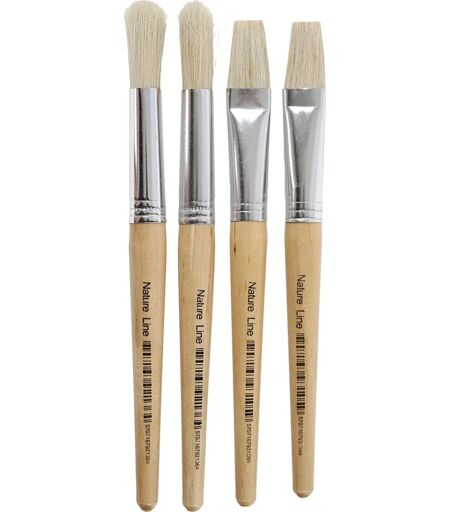 Gode og robuste malerpensler til børn Med Nature Line pensler får du flade kvalitetspensler med børster af svinehår og med ulakerede træskafter. Penslerne fås med både korte og lange skafter og penslerne egner sig især godt til tyktflydende malingstyper.Du får her 4 robuste børnepensler som passer perfekt til små børnehænder. Penslerne har et kort træskaft på 11 cm og robuste svinebørster som gør penslerne gode og holdbare at arbejde med for de mindste, så de nemt kan slippe kreativiteten og fantasien løs.Antal: 4 stk.Form på børste: 2 runde, 2 fladeBørstestørrelse: 15 mmSkaft: 11 cm ...