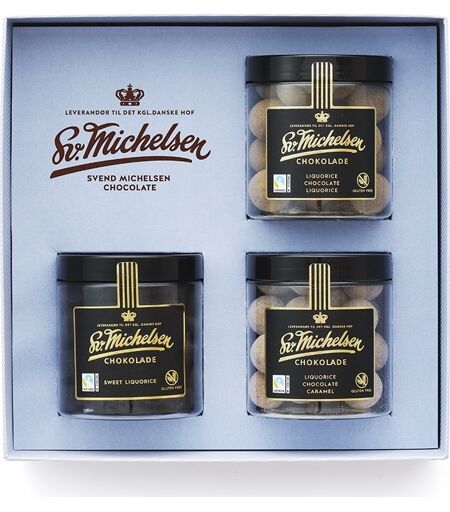 Forkæl sanserne med en eksklusiv gaveæske fra Sv. Michelsen. Æsken indeholder tre smagfulde varianter af den populære dragé: sød lakrids, lakrids med chokolade samt lakrids med karamel. Det hele er præsenteret i en elegant gaveæske, der gør den oplagt som firmagave, værtindegave eller en selvforkælelse udover det sædvanlige. Gaven der passer til alle anledninger Perfekt som firmagave, værtindegave, jubilæumsgave eller som en sød tak til en kollega, kunde eller samarbejdspartner. Gaveæsken fra Sv. Michelsen signalerer omtanke og kvalitet – og vækker altid begejstring hos modtageren. Specifikationer: Indhold: 450 gram Fairtrade Glutenfri Produceret i Danmark Sv. Michelsen - håndværk siden 1933 Idag er det tredje generation af Sv. Michelsen. som viderefører arven og de stolte traditioner fra stifter Svend Michelsen. Han brugte op til 10 år på at forfine smagen i et enkelt stykke chokolade. Den karakteregenskab førte til mange hædersbevisninger for firmaet, som i 1992 fik prædikatet "Leverandør til Det Kongelige Danske Hof".Idag håndlaver Sv. Michelsen fortsat chokoladen, og nye produkter udvikles efter de strengeste kvalitetskrav. Alt chokolade bliver handlet under det internationale Fairtrade kakaoprogram. ...