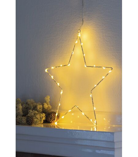 Dekorativ lyskæde med 40 LED'er elegant formet som en stjerneSimpel og elegant stjerne, som både kan hænges op i vinduet eller stå frit op ad væggen. Kæden har 40 LED lys, der giver et flot og naturligt lys. Stjernen har et enkelt og tidsløst design, som er med til at give et moderne udtryk. Passer godt ind i de fleste hjem, kontorer og virksomheder.Dekorationen kan styres af Sirius fjernbetjeningen, der dog IKKE medfølger, men kan tilkøbes. Fjernbetjeningen er udstyret med timer til 2, 4, 6 og 8 timer. Ved brug af denne funktion er lyset tændt i 2, 4, 6 og 8 timer, hvorefter det slukkes i 22, 20, 18 og 16 timer, Herefter tændes det igen. Dette passer perfekt til juleindretningen i virksomheder elller de danske vinteraftener og styrer på let vis lyssætningen.Bemærk at fjernbetjening IKKE medfølger, men tilkøbes. Farve: Hvid Dimensioner: Ø30 cm Antal LED's: 40 Batteridreven - batteri eksl. - 2xAAAFjernbetjening: Ja - medfølger ikkeKun til indendørs brug ...