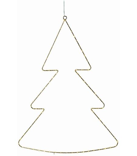Sirius Liva Juletræ 80 LED lys - Guld Fra Sirius kommer denne enkle, men elegante juletræ, som både kan hænges op i vinduet eller stå på en hylde eller op ad en væg. Juletræet er udstyret med en lyskæde med 80 LED lys, som giver et flot varmt og naturligt lys. Liva er batteridrevet og batterierne gemmes væk i en flot metalbeholder, som er en del af den smukke lysdekoration. Ønsker du at kunne time lyset, så det tænder og slukker selv, så kan der tilkøbes en fjernbetjening. Designer: Sirius Lyskilde: LED lys Energikilde: 2 x AAA batterier - ikke inkluderet Mål: H: 70 cm OBS: Købet omfatter kun juletræ m/lys ...