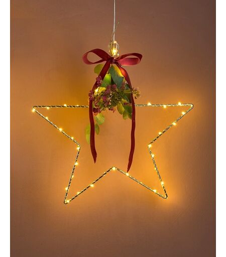 Dekorativ lyskæde med 40 LED'er elegant formet som en stjerneSimpel og elegant stjerne, som både kan hænges op i vinduet og stå frit op ad væggen. Kæden har 40 LED lys, der giver et flot og naturligt lys. Stjernen har et enkelt og tidsløst design, som er med til at give et moderne udtryk. Passer godt ind i de fleste hjem, kontorer og virksomheder.Dekorationen kan styres af Sirius fjernbetjeningen, der dog IKKE medfølger, men kan tilkøbes. Fjernbetjeningen er udstyret med timer til 2, 4, 6 og 8 timer. Ved brug af denne funktion er lyset tændt i 2, 4, 6 og 8 timer, hvorefter det slukkes i 22, 20, 18 og 16 timer, Herefter tændes det igen. Dette passer perfekt til juleindretningen i virksomheder elller de danske vinteraftener og styrer på let vis lyssætningen.Bemærk at fjernbetjening IKKE medfølger, men tilkøbes. Farve: Guld Dimensioner: Ø30 cm Antal LED's: 40 Batteridreven - batteri eksl. - 2xAAAFjernbetjening: Ja - medfølger ikke Indbygget timerfunktion Kun til indendørs brug ...
