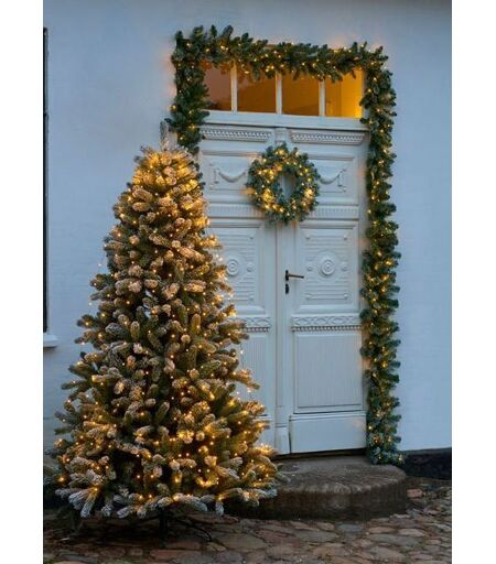 Sirius Anton Juletræ m/195 LED lys H: 1,5 m - Snowy Pynt indgangspartiet eller haven op med dette smukke og naturtro udendørs kunstige juletræ. Anton juletræ skaber med dets realistiske grangrene og varme lys den helt rigtige og hyggelige julestemning. Dette juletræ har grangrene med imiteret sne, som får træet til at se endnu mere realistisk ud. Der kan tilkøbes en fjernbetjening, så du kan styre belysningen som du ønsker. Fjernbetjeningen sættes til enten "ON", "OFF", og tidsindstilles på 2, 4, 6 eller 8 timer. Bemærk: Sirius Fjernbetjening medfølger ikke Mål: H: 1,5 m Ø: 1,02 m Ledningens længde: 5 m Energikilde: 2,4W / 6V / IP44 Farve: Snowy Lysenes farve: Warm White ...