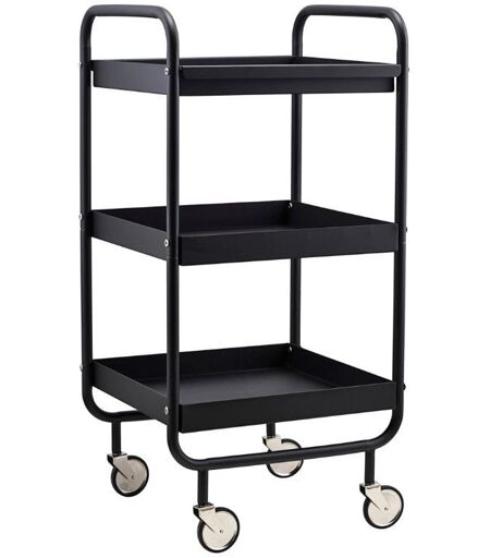 House Doctor Roll - Sort Skønt rullebord fra House Doctor. Den smarte trolley er en kombination melem en reol og et rullebord, den har derfor et hav af anvendelses muligheder. Møblet har et industrielt og minimalistisk look der passer perfekt til tidens tendenser og de fleste moderne nordiske hjem. Brug reolen som rullebord i køkkenet til opbevaring eller som reol i stuen - kun fantasien sætter grænser. Derudover har trolleyen en smart aftagelig bakke så du nemt kan servere morgenkaffen på sengen. Materiale: Stål Mål: L: 42 cm B: 38 cm H: 85 cm ...