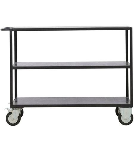 House Doctor Reol m. 4 hjul - Sort Skøn reol fra House Doctor. Den smarte reol er en kombination melem et hyldesystem og et rullebord, den har derfor et hav af anvendelses muligheder. Møblet har et industrielt og minimalistisk look der passer perfekt til tidens tendenser og de fleste moderne nordiske hjem. Brug reolen som rullebord i køkkenet til opbevaring og ekstra arbejdsplads, eller som reol i stuen - kun fantasien sætter grænser. Materiale: Krydsfiner Jern Mål: L: 130 cm B: 40 cm H: 98 cm ...