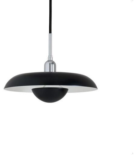 Piet Hein RA 250 Pendel Ø: 25 cm - Sort/Sort Ledning Den smukke RA pendel blev designet af Piet Hein i 1931. Pendlens konstruktion af skærmene fordeler lyset uden at blænde. Piet Hein er kendt for at benytte sig af lange matematiske formler i hans designs, og RA pendlen er bestemt ingen undtagelse. RA 250 har to sorte metalskærme og en sort tekstilledning med en længde på 3 meter. Pendlen måler 18,1 cm i højden og er en stilfuld klassiker der bestemt vil pynte over spisebordet, i entreéen eller over hjørnebordet i stuen. Designer: Piet Hein, 1931 Materialer: Metal Mål: Højde: 18,1 cm Diameter: 25 cm Tekniske Specifikationer: 3 meter sort ledning Max 40 W E14 Farve: Sort ...