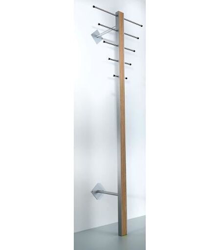 Hoigaard ST-1 Stumtjener H: 180 cm - Eg Olieret ST-1 Stumtjener fra Hoigaard er den mere moderne version af stumtjeneren. Dette elegante redskab er perfekt, når overtøjet skal organiseres og opbevares i entréen. Selve kroppen på stumtjeneren skal fastgøres til væggen og så hænger der varierende størrelse stænger ud fra kroppen. På selve stumtjeneren er der plads til 10 bøjler. Design: Hoigaard Materiale: Olieret Eg Eloxeret aluminium Rustfri stål Mål: H: 180 cm B: 55 cm D: 34 cm ...