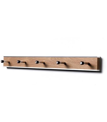 Hoigaard KR-35 Knagerække B:60 cm - Eg Olieret KR-35 Knagerækken fra Hoigaard er lige så funktionel som den er er et klassisk design. Knagerækken har fem træknager med stål på den ydre del. Det stilrene design fra Hoigaards yderligere produkter går igen i denne knagerække. Dette gør den, ligesom de andre produkter i sortimentet, meget enkel og passende til ethvert rum, der måtte blive placeret i. Design: Hoigaard Materiale: Olieret Eg Eloxeret aluminium Rustfri stål Mål: H: 6 cm B: 60 cm D: 8 cm ...