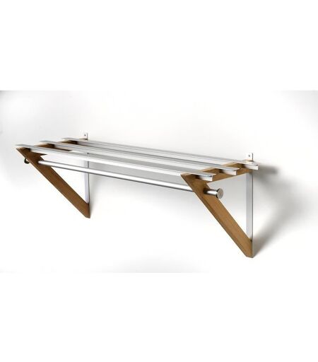 Hoigaard HH-7 Hattehylde 98 x 35 cm - Eg Olieret En nydelig HH-7 Hattehylde fra Hoigaard. Hattehylden er en kombination af en vandret overflade til cykelhjelme eller opbevaringskurve og en bøjlestang til overtøjet. Træets farve og det eloxeret aluminium giver en elegant blanding af de enkelte materialer. Eloxeret aluminium er slidsstærkt materiale. Design: Hoigaard Materiale: Olieret Eg Eloxeret aluminium Mål: H: 35 cm B: 98 cm D: 35 cm ...