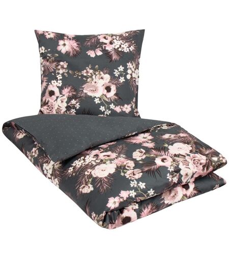 By Night Sengetøj 150x210 cm - Vendbart design i 100% Bomuldssatin - Flowers & Dots grågrøn - Sengesæt fra