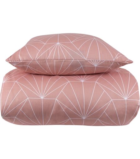 Borg Living Sengetøj dobbeltdyne - 200x200 cm - Vendbart design i 100% Bomuldssatin - Hexagon peach - Sengesæt fra By Night
